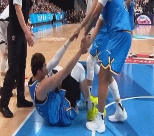 北京时间1月1日,北京VS广东的第二节,广东后卫徐杰被北京中锋周琦误伤,徐杰被撞后倒地不起,现场直接进担架车,但最终徐杰是被队友背着离开球场。