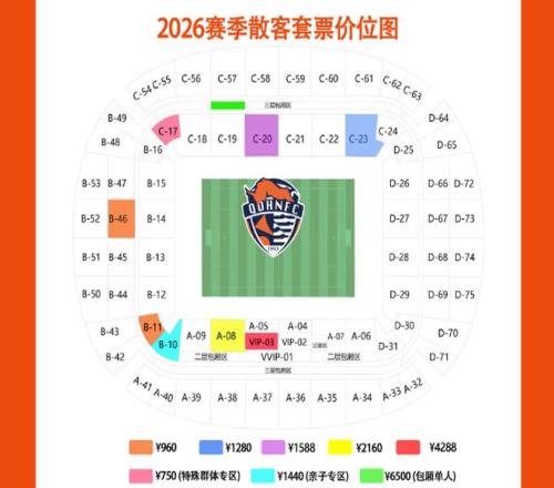 上赛季120元的区域,本赛季细分成了108元、128元两个档次,球迷可以根据自己的需求合理选择。上赛季180元的区域(A6至A9),基本保持不变。VIP区域从360元调整到了388元。