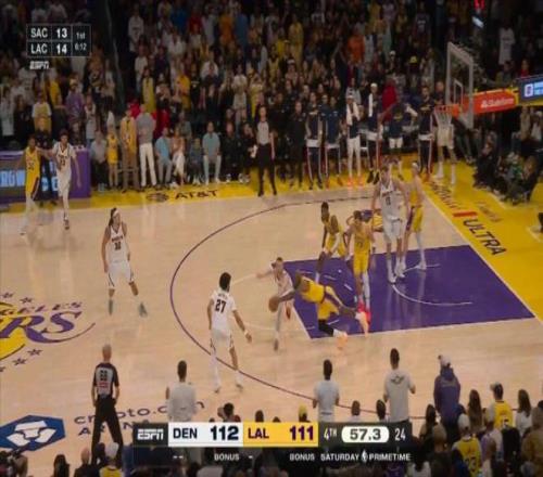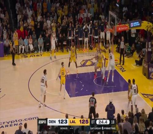 常规赛,湖人主场127-125加时战胜掘金。