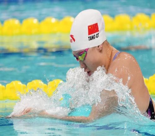 女子100米蛙泳:上海选手唐钱婷游出1分05秒36,夺得金牌 -